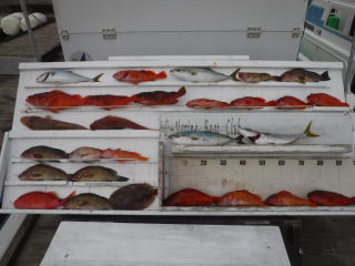 8月25日(月) 三重県志摩市 柴原様 ホウボウ・カサゴ・ハタ類など お二人で68匹 |
